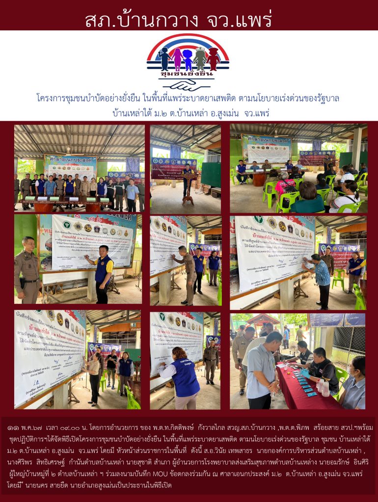 โครงการชุมชนบำบัดอย่างยั่งยืน ในพื้นที่แพร่ระบาดยาเสพติด ตามนโยบายเร่งด่วนของรัฐบาล