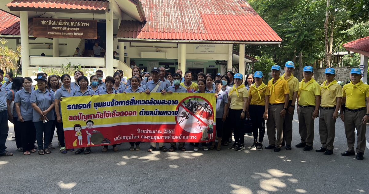ให้ พ.ต.ท.พิภพ สร้อยสาย สวป.สภ.บ้านกวาง พร้อมด้วยข้าราชการตำรวจจิตอาสา สภ.บ้านกวาง รวมจำนวน 12 นาย ประกอบด้วย นายอดิชัย รัตนวิมลชัยผอ.รพ.สต.บ้านกวาง พร้อมด้วย อสม./ประชาชนตำบลบ้านกวางฯรวมจำนวน ทั้งหมด 82 คนร่วมกิจกรรมจิตอาสาบำเพ็ญสาธารณประโยชน์รณรงค์สำรวจลูกน้ำยุงลายและทำลายแหล่งเพาะพันธุ์ยุง ในเขตพื้นที่ตำบลบ้านกวาง เพื่อป้องกันการแพร่ระบาดของโรคไข้เลือดออก ในวันพฤหัสบดี ที่ 20 มิถุนายน 2567 ณ โรงพยาบาลส่งเสริมสุขภาพตำบลบ้านกวาง หมู่ 1 ตำบลบ้านกวาง อำเภอสูงเม่น จังหวัดแพร่ผลการดำเนินการเรียบร้อยดี