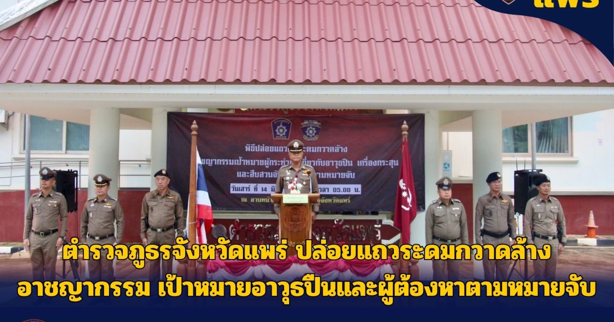 ตำรวจภูธรจังหวัดแพร่ ปล่อยแถวระดมกวาดล้างอาชญากรรม เป้าหมายอาวุธปืนและผู้ต้องหาตามหมายจับ