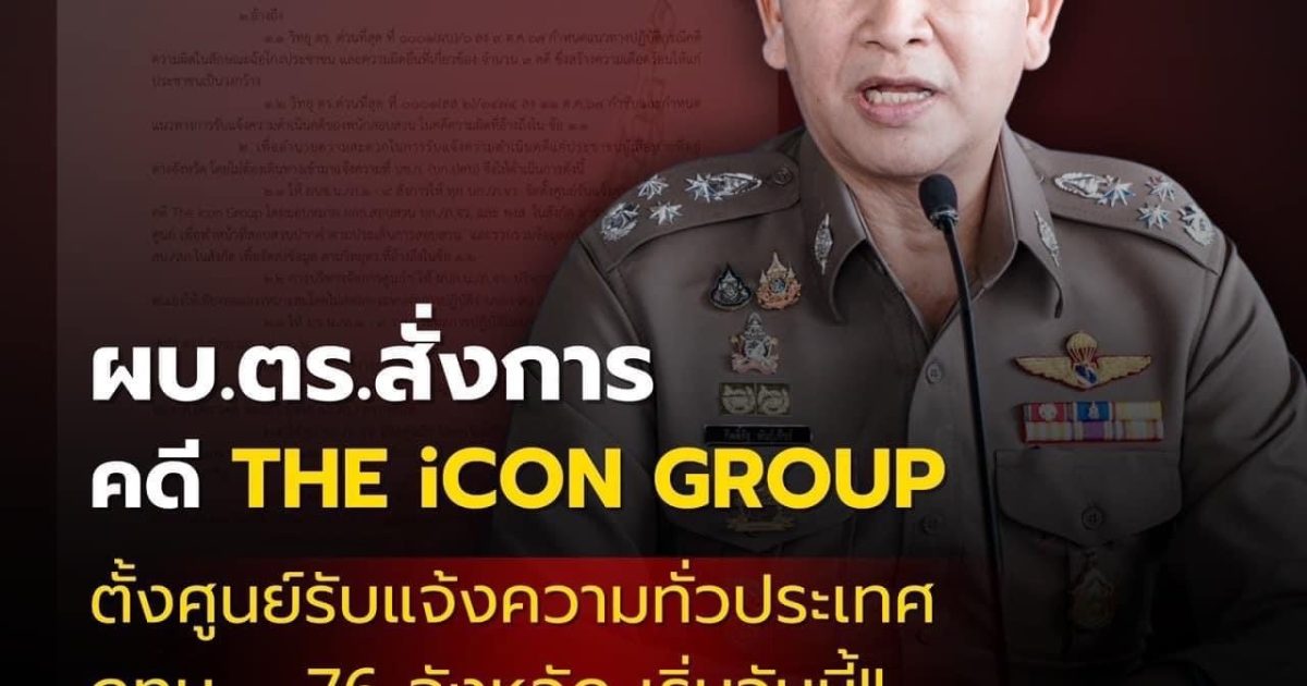 ผบ.ตร. สั่งการ คดี THE iCON GROUP!! 21 ตุลาคม 2024 โดย admin / ข่าวประชาสัมพันธ์,ข่าวฝากประชาสัมพันธ์