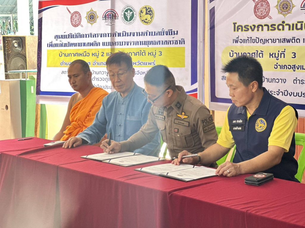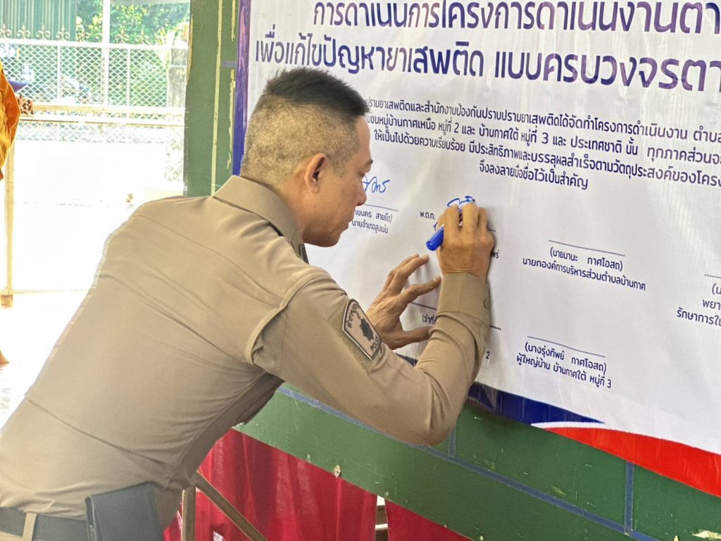 พ.ต.ท.กิตติพงษ์ กังวาลไกล สวญ.สภ.บ้านกวาง พ.ต.ต.พิภพ สร้อยสาย สวป.สภ.บ้านกวาง ,ชุดชมส.สภ.บ้านกวาง ,ชุดสืบสวน ,งานป้องกันปราบปราม จนท.ตำรวจชุดปฏิบัติการฯ ร่วมพิธีเปิดโครงการดำเนินงานตำบลยั่งยืนฯ ณ ศาลาอเนกประสงค์บ้านกาศใต้ หมู่ที่ 3 โดยมีนายนคร สายยืด นายอำเภอสูงเม่น เป็นประธานในพิธีเปิดโครงการฯ และได้ทำ ตรวจหาสารเสพติดผู้นำชุมชน และผู้เข้าร่วมโครงการฯ จำนวน 22 ราย เบื้องต้นไม่พบสารเสพติดในร่างกาย แต่อย่างใด