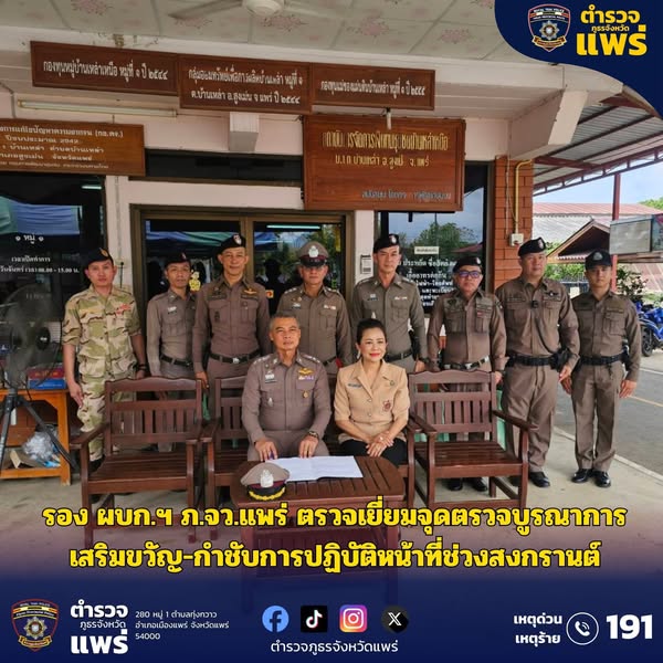 รอง ผบก.ฯ ภ.จว.แพร่ ตรวจเยี่ยมจุดตรวจบูรณาการ เสริมขวัญ-กำชับการปฏิบัติหน้าที่ช่วงสงกรานต์