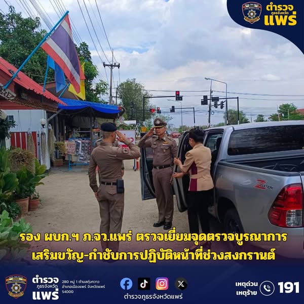 รอง ผบก.ฯ ภ.จว.แพร่ ตรวจเยี่ยมจุดตรวจบูรณาการ เสริมขวัญ-กำชับการปฏิบัติหน้าที่ช่วงสงกรานต์