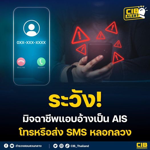 ระวัง มิจฉาชีพแอบอ้างเป็น AIS โทรหรือส่ง SMS หลอกลวง . ปัจจุบันมิจฉาชีพมี 2 กลลวงใหม่ที่แอบอ้าง AIS