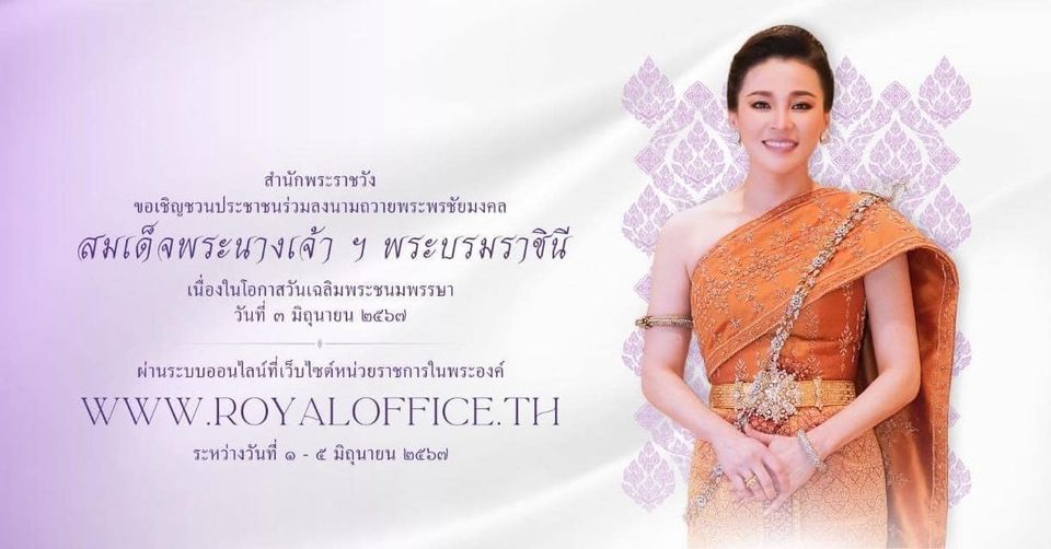 สำนักพระราชวัง ขอเชิญชวนประชาชนร่วมลงนามถวายพระพรชัยมงคล สมเด็จพระนางเจ้า ฯ พระบรมราชินี เนื่องในโอก