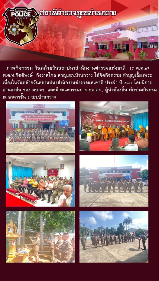 วันคล้ายวันสถาปนาสำนักงานตำรวจแห่งชาติ 17 ต.ค. 67 สภ.บ้านกวาง นำโดย พ.ต.ท.กิติพงษ์ กังวาลไกล สวญ.สภ.