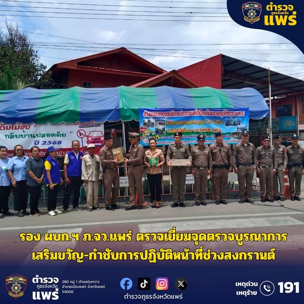รอง ผบก.ฯ ภ.จว.แพร่ ตรวจเยี่ยมจุดตรวจบูรณาการ เสริมขวัญ-กำชับการปฏิบัติหน้าที่ช่วงสงกรานต์