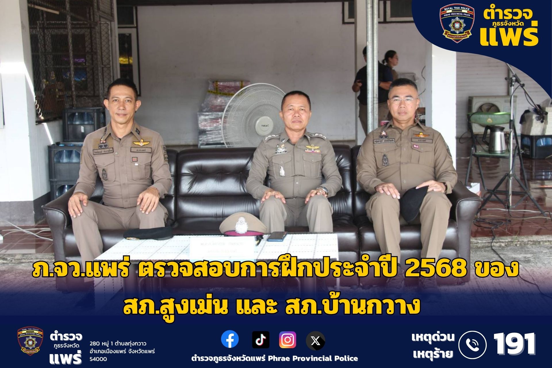 ภ.จว.แพร่ ตรวจสอบการฝึกประจำปี 2568 ของ สภ.สูงเม่น และ สภ.บ้านกวาง วันที่ 6 มิ.ย.2568 เวลา 09.00 น.