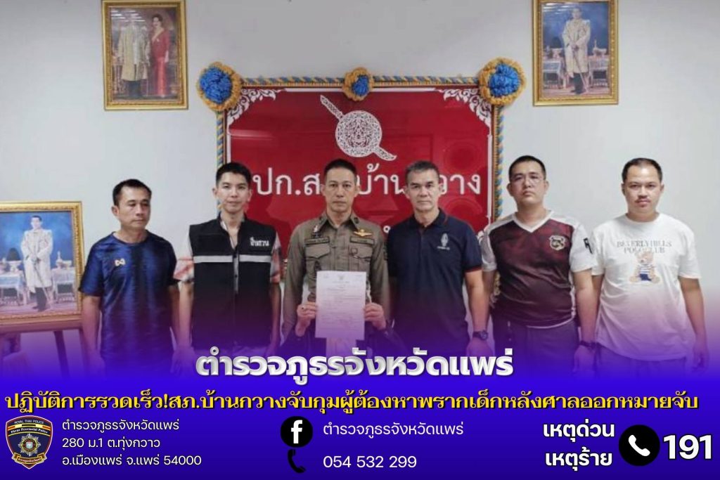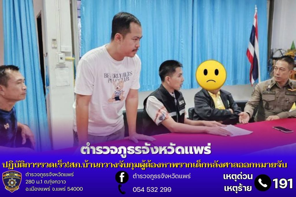 ผู้ต้องหา คือ นายกัณตพล ซึ่งถูกออกหมายจับโดยศาลจังหวัดแพร่ หมายเลข จ.47/2568 ลงวันที่ 21 กุมภาพันธ์ 2568 ในข้อหา “โดยปราศจากเหตุอันควร พรากเด็กอายุไม่เกินสิบห้าปีไปเสียจากบิดามารดา” เจ้าหน้าที่สามารถติดตามและจับกุมได้อย่างรวดเร็ว โดยไม่ให้ผู้ต้องหาหลบหนีไปได้