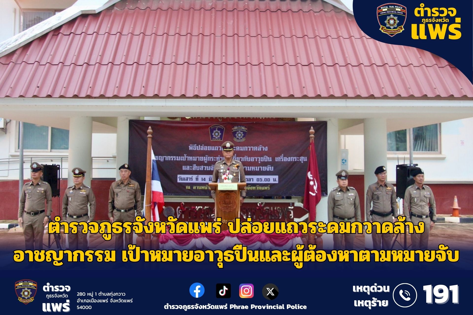 ตำรวจภูธรจังหวัดแพร่ ปล่อยแถวระดมกวาดล้างอาชญากรรม เป้าหมายอาวุธปืนและผู้ต้องหาตามหมายจับ