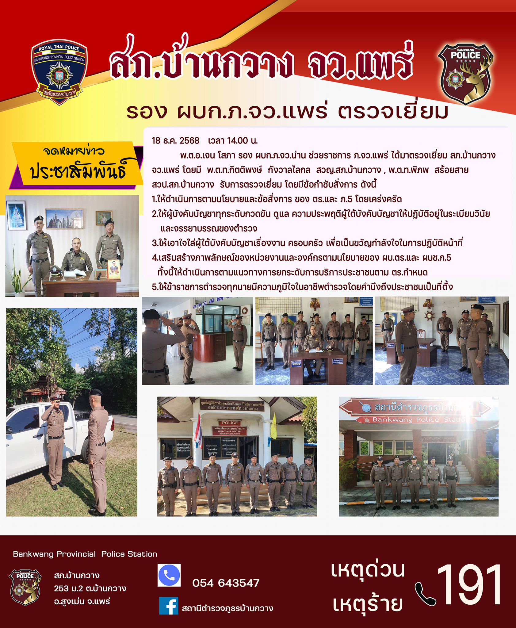 ประชุมบริหารตำรวจภูธรจังหวัดแพร่ ครั้งที่ 12/2568 วันที่ 11 ธันวาคม 2568 เวลา 13.30 น. พล.ต.ต.พงษ์