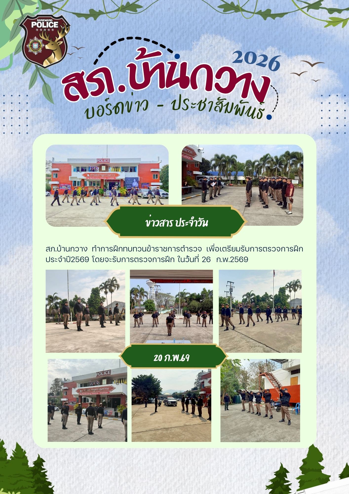 วันที่ 20 ก.พ.69 สภ.บ้านกวาง ทำการฝึกทบทวนข้าราชการตำรวจ เพื่อเตรียมรับการตรวจการฝึกประจำปี 2569 โดย