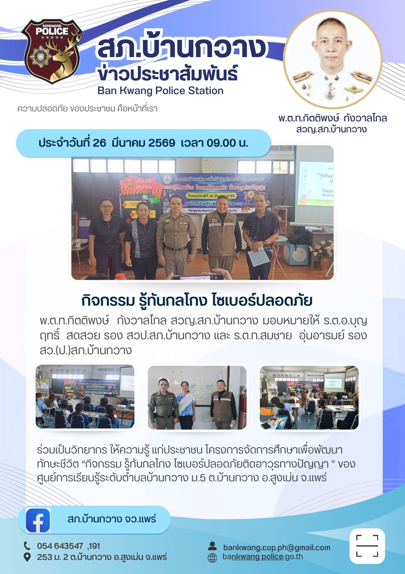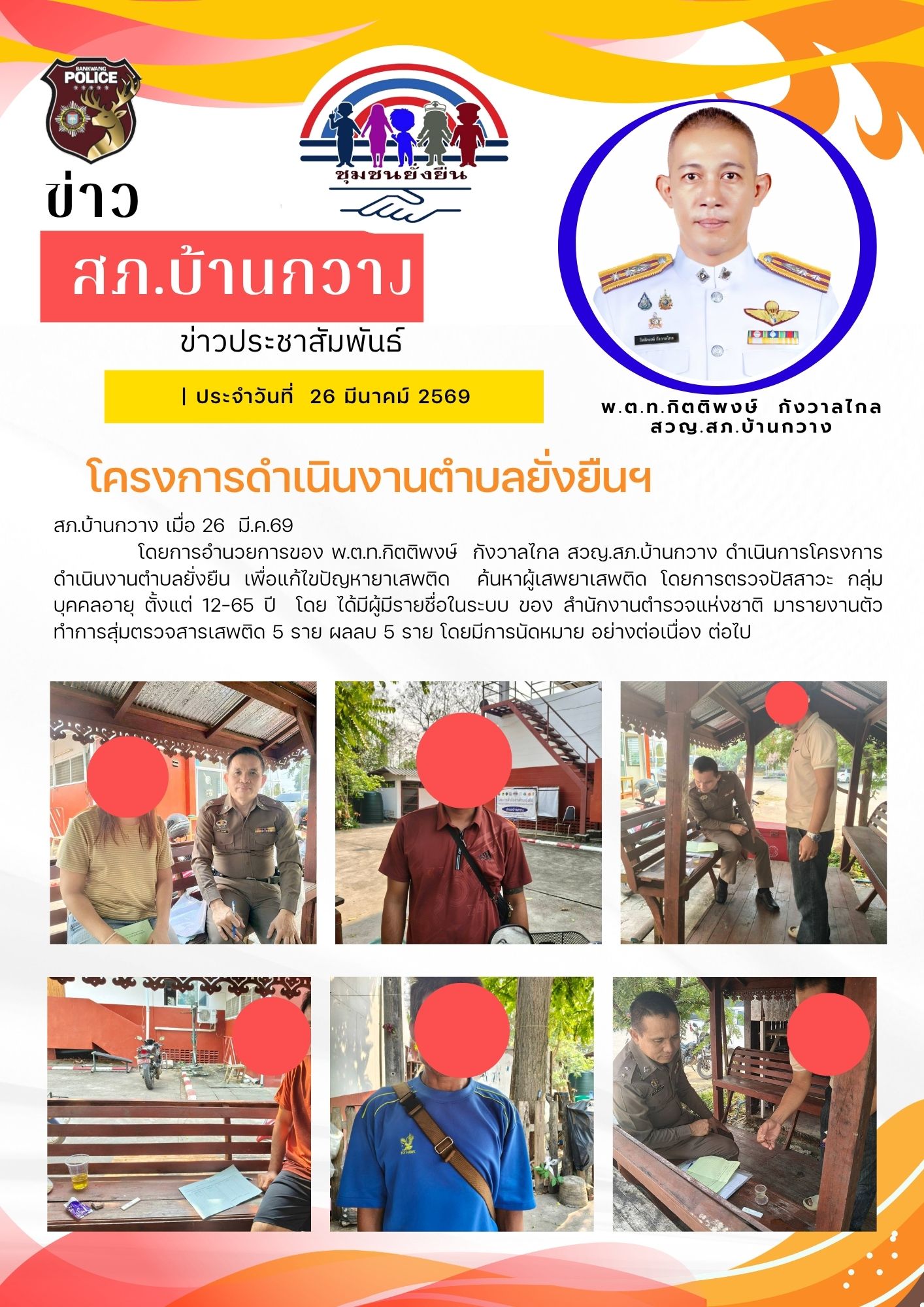 วันที่ 26 มี.ค.69 เวลา 13.30น. โดยการอำนวยการของ พ.ต.ท.กิตตพงษ์ กังวาลไกล สวญ.ฯ ดำเนินการโครงกาารดำเ